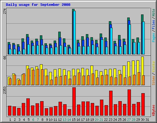 Day | Hits | Files | Pages | Visits | Sites | KBytes | ||||||